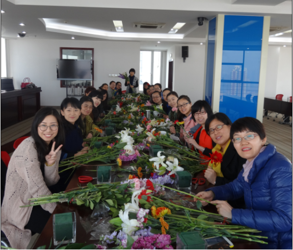 3月6日,國(guó)富投資集團(tuán)十八樓大會(huì)議室內(nèi)花香四溢、春意盎然,一場(chǎng)別開(kāi)生面的慶?!叭藡D女節(jié)”插花藝術(shù)培訓(xùn)活動(dòng)正在這里熱鬧舉辦。