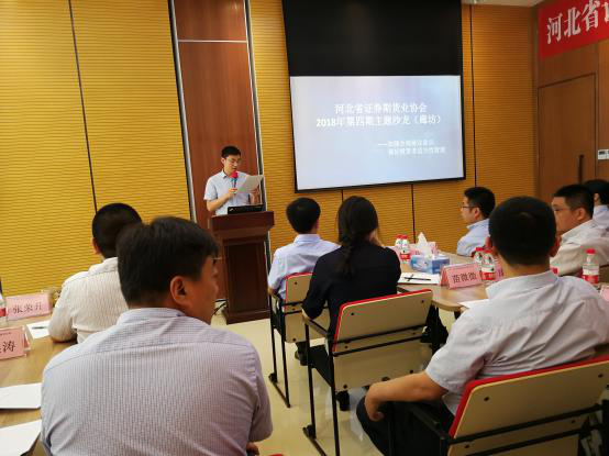 河北省證券期貨業(yè)協(xié)會2018年第四期主題沙龍活動于6月5日下午在廊坊市舉行。此次沙龍的活動主題為“加強合規(guī)展業(yè)意識,做好投資者適當性管理”。本次沙龍活動共計有29家證券期貨基金經(jīng)營機構(gòu)(24證券機構(gòu)、3家期貨機構(gòu)、1家基金公司、1家資本管理公司)的負責人(代表)參加。公司營業(yè)部作為協(xié)會會員單位應邀參加了此次活動。