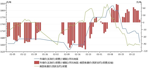 期貨方面,在經(jīng)歷了兩周的大幅下跌之后,本周尿素期貨逐步止跌企穩(wěn),主力UR2005合約基本圍繞著1650元/噸一線上下20元窄幅波動。雖國外疫情延續(xù)快速蔓延態(tài)勢,宏觀風(fēng)險猶存,但各國與國際組織陸續(xù)出臺相關(guān)經(jīng)濟(jì)刺激政策,市場恐慌情緒有所緩解,包括尿素在內(nèi)的多數(shù)工業(yè)品價格止跌企穩(wěn),但受累于當(dāng)前相對疲軟的基本面,尿素期貨反彈動能仍顯不足,期價呈現(xiàn)低位震蕩格局。