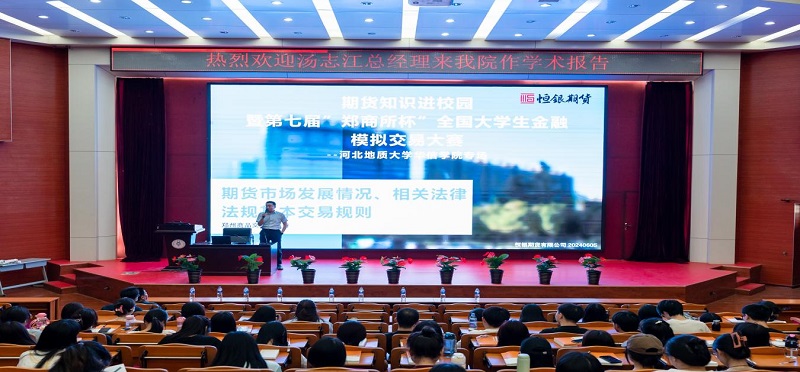 2024年6月5日,恒銀期貨總經(jīng)理湯志江率領(lǐng)團(tuán)隊(duì)在河北地質(zhì)大學(xué)華信學(xué)院報(bào)告廳開展了一場別開生面的“期貨知識(shí)進(jìn)校園”活動(dòng),并同步舉辦了第七屆“鄭商所杯”全國大學(xué)生金融模擬交易大賽——河北地質(zhì)大學(xué)華信學(xué)院專場宣講會(huì)。為了預(yù)熱本次活動(dòng),校方在公眾號發(fā)布了活動(dòng)通告,受到了各系學(xué)生的熱烈追捧,參會(huì)人數(shù)超過300人。此次活動(dòng)旨在加強(qiáng)期貨知識(shí)在校園的普及與推廣,提升大學(xué)生對金融市場的認(rèn)識(shí)與理解,同時(shí)也為廣大師生提供了“鄭商所杯”這樣一個(gè)展示才華、交流學(xué)習(xí)的平臺(tái)。