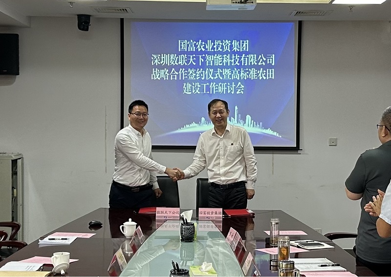 7月2日,國(guó)富農(nóng)業(yè)投資集團(tuán)與深圳數(shù)聯(lián)天下智能科技有限公司簽訂戰(zhàn)略合作協(xié)議,為國(guó)富農(nóng)業(yè)投資集團(tuán)加快培育農(nóng)業(yè)新質(zhì)生產(chǎn)力、打造省內(nèi)一流高標(biāo)準(zhǔn)農(nóng)田建設(shè)項(xiàng)目注入科技新活力。國(guó)富農(nóng)業(yè)投資集團(tuán)黨委副書記、副董事長(zhǎng)、總經(jīng)理張立忠,集團(tuán)黨委常委、常務(wù)副總經(jīng)理馬國(guó)棟,集團(tuán)黨委委員、副總經(jīng)理李其強(qiáng),及相關(guān)業(yè)務(wù)骨干同數(shù)聯(lián)天下副總裁鄧才良一行進(jìn)行工作研討并見(jiàn)證簽約儀式。
