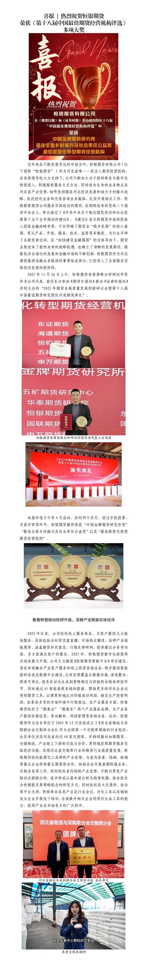 喜報(bào) | 熱烈祝賀恒銀期貨榮獲《第十八屆中國(guó)最佳期貨經(jīng)營(yíng)機(jī)構(gòu)評(píng)選》多項(xiàng)大獎(jiǎng)
