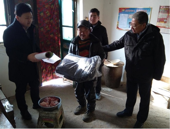 2020年1月8日,國(guó)富投資集團(tuán)黨委副書記韓繼普、副總經(jīng)理邸智彬帶領(lǐng)黨員志愿者,驅(qū)車兩個(gè)多小時(shí),來(lái)到保定市唐縣北店頭鄉(xiāng)西同龍村,開展春節(jié)前夕送溫暖活動(dòng),將暖暖情誼和深深祝福送給貧困戶。